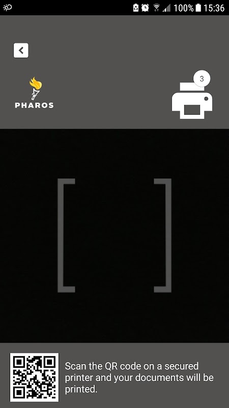 5) Acérquese a cualquier impresora segura en la red y escanee el código QR en la impresora (el escáner QR aparecerá automáticamente cuando tenga documentos en su cola listos para imprimir).