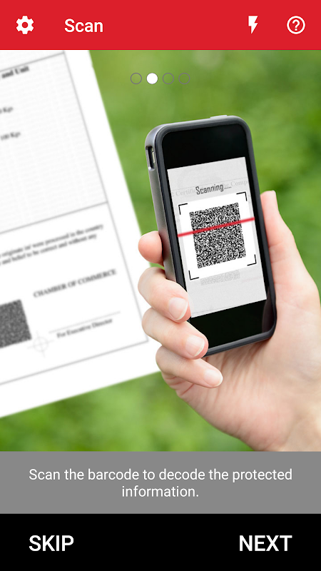 Para llevar a cabo la verificación, sólo tiene que escanear el SecureCode en el documento. La aplicación va a decodificar automáticamente el SecureCode que se puede utilizar para cruzar referencia contra el documento.