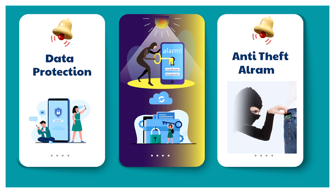 Encuentra mi teléfono perdido en segundos si un ladrón intenta robar el teléfono en un lugar público. Si un ladrón o un amigo entrometido intenta desbloquear su teléfono con el código PIN incorrecto en la pantalla de bloqueo del teléfono, esta aplicación tomará la selfie del intruso y le enviará por correo electrónico su foto y ubicación secretas y podrá encontrar su teléfono perdido. Por lo tanto, esta aplicación de seguridad del teléfono también es una herramienta útil como cazador de ladrones de teléfonos móviles. La aplicación "Alarma antirrobo del teléfono" tiene características de seguridad del teléfono de acuerdo con cada situación. Su teléfono está seguro con esta aplicación de alarma de bloqueo de seguridad. Genera una alarma de emergencia por cada intento de robo. Alarma anti-toque (No toques mi teléfono):