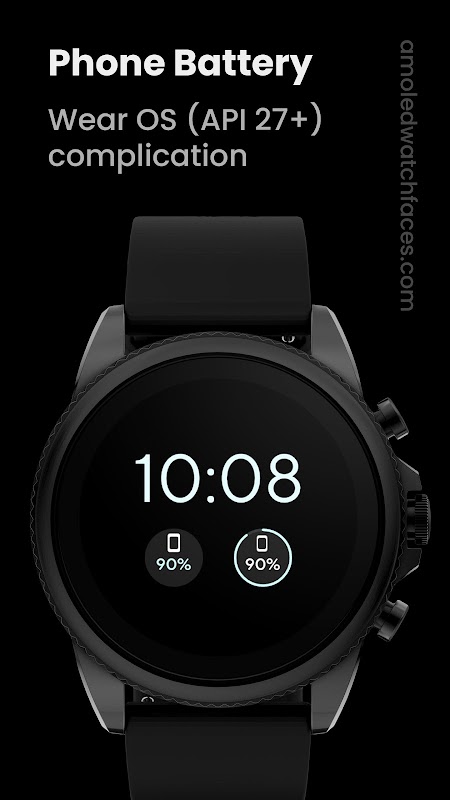 Use la complicación personalizada del sistema operativo para el nivel de batería del teléfono (%). ¡Añádelo a cualquier esfera del reloj!