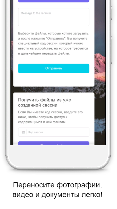 1. Abra la aplicación PhoneSync y seleccione los archivos que desea transferir. ¡Puede transferir hasta 50 archivos a la vez! E incluso si esto no es suficiente para usted, recuerde que puede hacer una cantidad ilimitada de programas. Cuando todos los archivos están seleccionados, haga clic en Enviar. Verá un código de sesión especial (el código de sesión es un cierto identificador de elementos utilizados en la aplicación PhoneSync para hacer que la sincronización sea lo más simple posible).