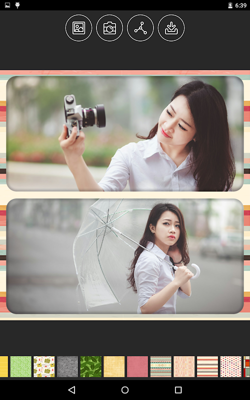 -Ghep anh với grid (Ghép ảnh ô): Bạn sẽ bắt gặp những kiểu grid (ô) chưa từng xuất hiện trên các ứng dụng tương tự khác, tất cả những tấm ảnh của bạn là duy nhất, bạn sẽ không phải đụng hàng khi chia sẻ lên mạng xã hội