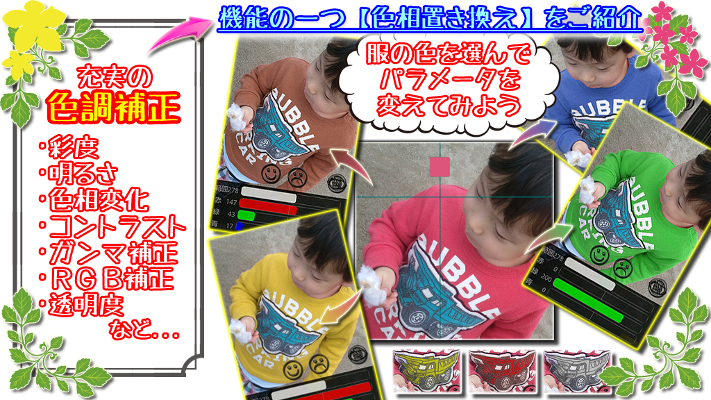画像編集アプリだから、背景消去や色の調節なども自由自在。