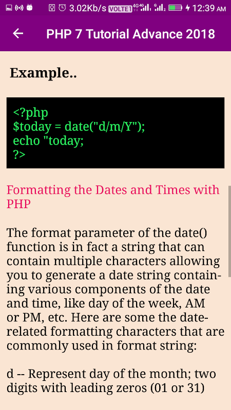 Every topic in this PHP tutorials application 2018 contains lots of practice examples that you can test yourself to extend your learning on the topic. The purpose of these examples is to provide you a better understanding of the usage of PHP in your day to day implementation.