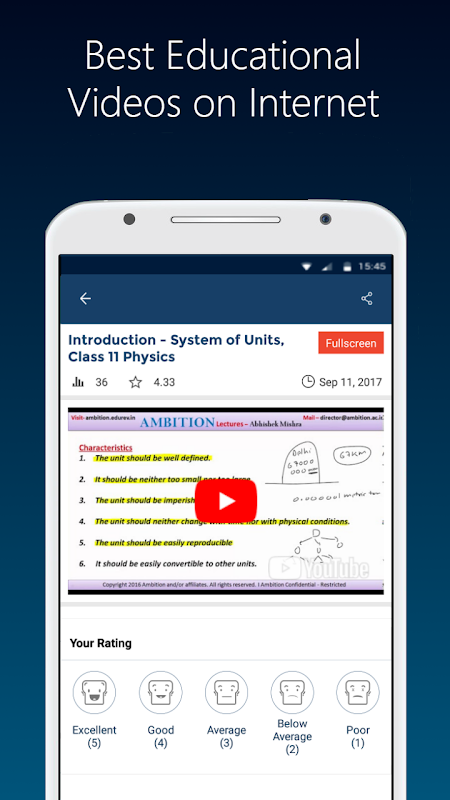 Esta aplicación de física estándar incluye: videoclases de HC Verma e Irodov, exámenes por nivel, ejemplos de exámenes NCERT resueltos, apuntes CBSE de todas las asignaturas, exámenes resueltos, ejemplos de exámenes CBSE, preguntas importantes, preguntas adicionales e incluso apuntes de los mejores. Además, cuenta con un banco de preguntas con más de 5000 preguntas de opción múltiple.