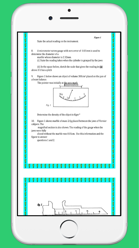 La aplicación contiene preguntas de revisión de física y respuestas.