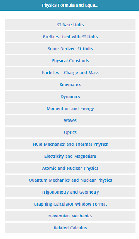 Physics Formulas and Equations is a nice app with elementary Physics Formulas. From this app, you will get formula and equitation of these topics: