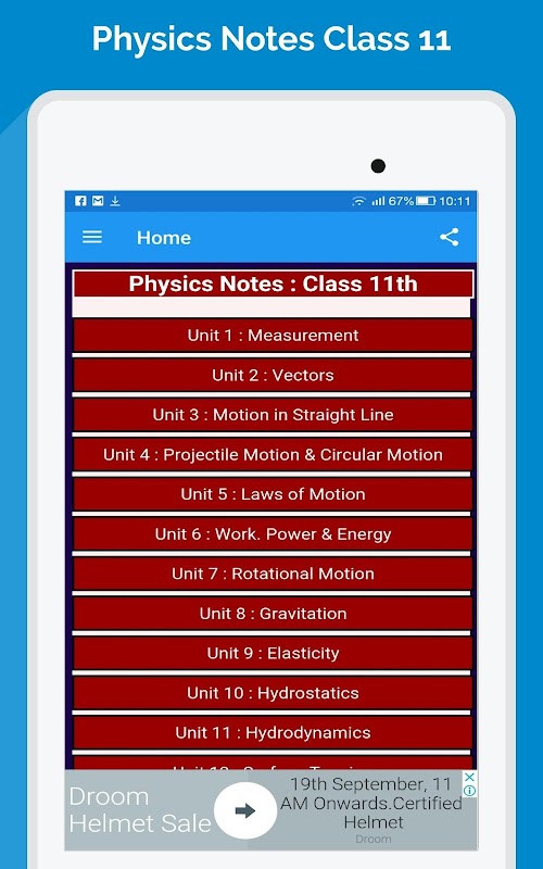 Physics Notes for Class 11th, Covering All 18 Chapters beautifully, The App is specially designed to help all students of class 11 for their physics subject. It covers all 18 Units of Physics.