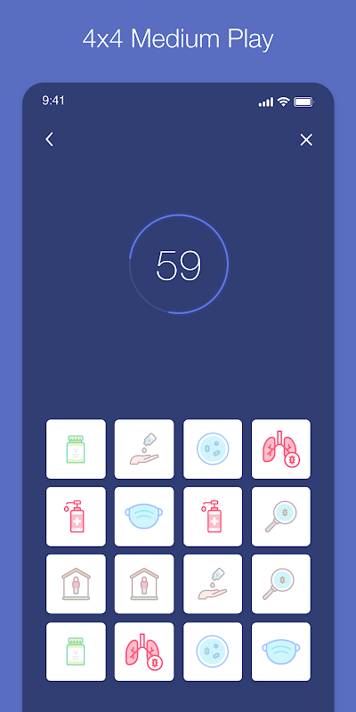 Primero, se mostrarán cartas de 3x3 en esta app para adultos. Si superas el nivel de imágenes mostrado, tendrás que jugar la siguiente ronda: 4x4. El nivel difícil será 5x5.