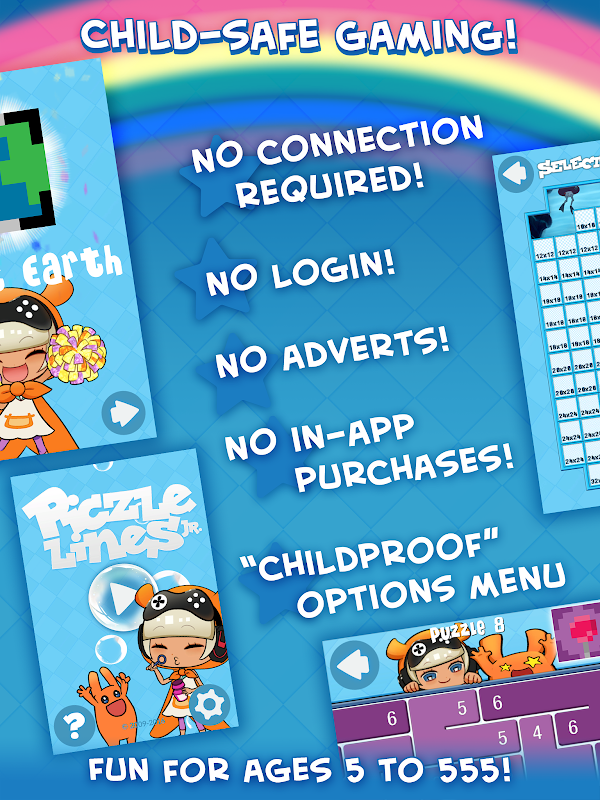Piczle Lines Jr. es una encarnación segura para los niños del popular y clásico juego de puzzle de lógica Piczle Lines. ¡100 coloridos puzzles de lógica para todas las edades de 5 a 555 años!