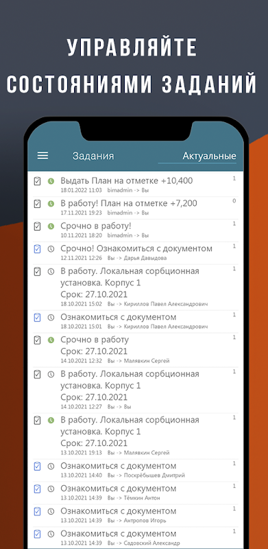 • Trabajar con tareas, cambiando el estado de las tareas recibidas;