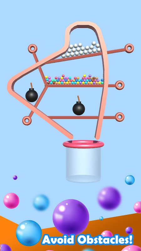 🔍 ¡Ponte a prueba! Organiza inteligentemente los movimientos de los alfileres, evita las bombas y completa los tirones de los alfileres para avanzar en Rescue Puzzle. Piensa antes de tirar para asegurarte de que las bolas de colores lleguen al cubo de forma segura.