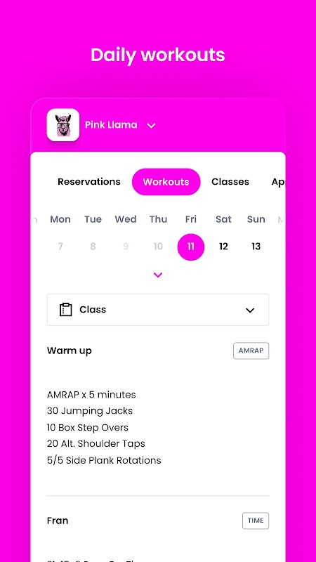 Reservas de clases y gestión de cuentas para miembros de Pink Llama