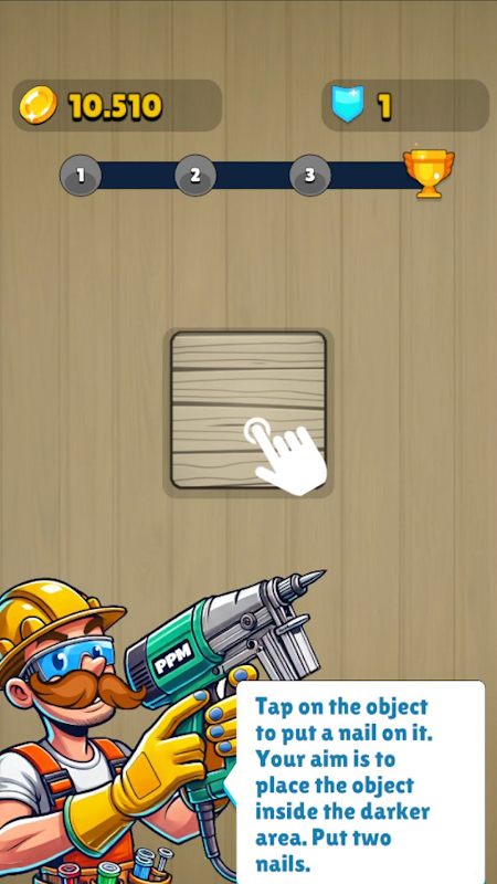 Ponte a prueba para clavar objetos que caen en las zonas objetivo usando clavos estratégicamente colocados, como un tornillo en madera, ¡pero con un nivel de precisión completamente nuevo!