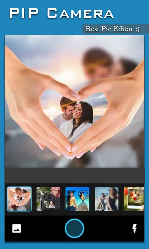 La cámara PIP le permite hacer que su foto se vea como una foto de una cámara DSLR profesional y puede editar su foto con una hermosa herramienta de edición de fotos. El editor de imágenes de la cámara PIP tiene muchas formas de collage de fotos que puede hacer su imagen divertida con este editor de imágenes.