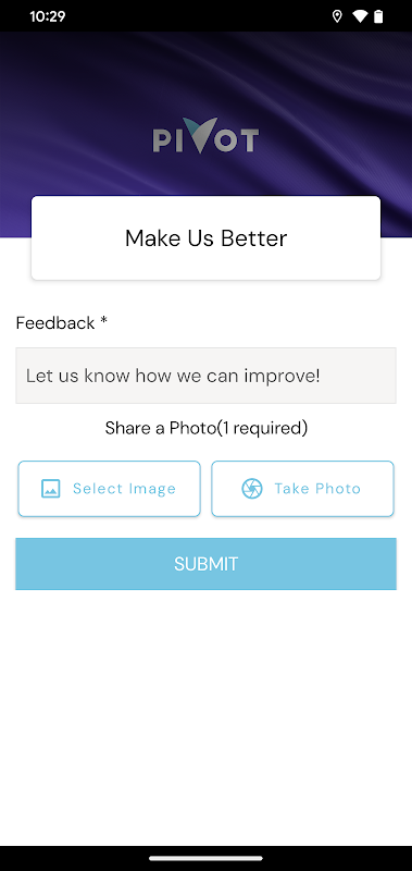 Bienvenido a la aplicación Pivot CPA, donde la experiencia de nuestros empleados es nuestro enfoque principal. Hemos desarrollado una aplicación personalizada para mejorar su experiencia en la oficina... o en cualquier otro lugar. Tendrá fácil acceso a información detallada de y sobre la empresa, así como a un calendario completo de la empresa. También habrá álbumes de fotos compartidos para estar al día con las personas (y los cachorros) que nos hacen quienes somos. Incluso hay varias formas de comunicarse con nosotros, incluida reservar un hot desk, solicitar su lugar favorito para almorzar o brindarnos comentarios para mejorarnos. Esperamos que disfrute de la experiencia de los contadores públicos digitales de Pivot.