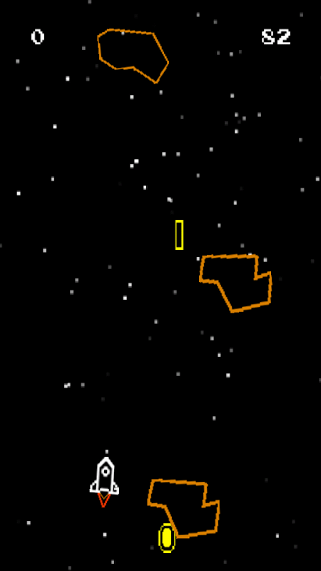 Your Mission:Travel the universe, see the stars...and don't blow up! In this Retro style game, just tilt your device and fly though space as far as you can while avoiding large asteroids. Also, try not to be the first person in history to hit an alien UFO mid-flight. Do you have what it takes to go where no man has gone before? Let the best pilot win.