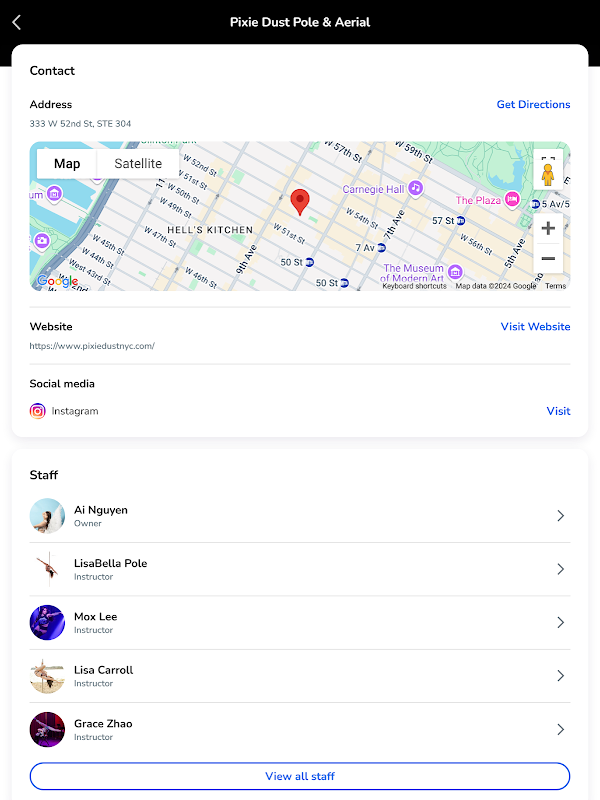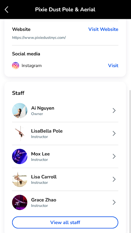 Descargue la aplicación para ver horarios y reservar sesiones en Pixie Dust Pole & Aerial