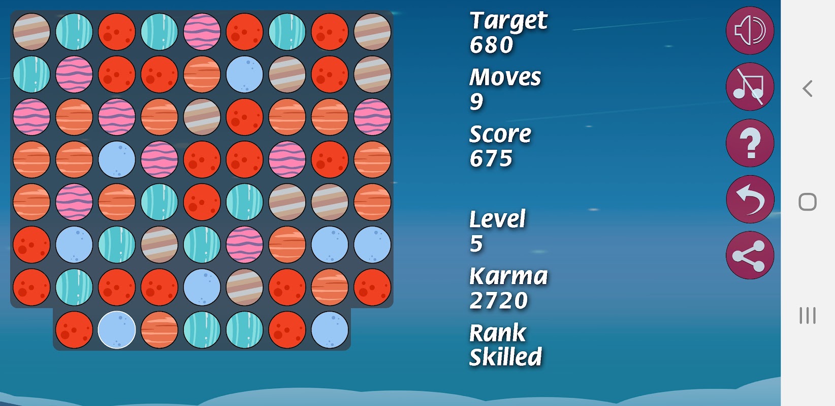 Juego match-3 que presenta los planetas del Sistema Solar 125 niveles.