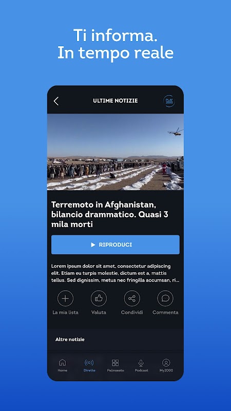 Play2000, la App de Tv2000 e inBlu2000, es una plataforma de streaming que explora y entretiene con transmisiones en vivo, video on demand y podcasts, conectada a una emisora que tiene un fuerte sentido de comunidad.