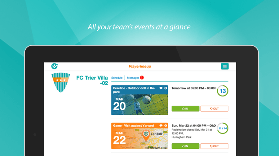 La gestión de un equipo deportivo recreativo nunca ha sido tan fácil. Con una sola mirada verás las últimas actualizaciones y asistencia a eventos de su equipo. Nuestra aplicación galardonado y popular trae notificaciones directamente a su teléfono inteligente.