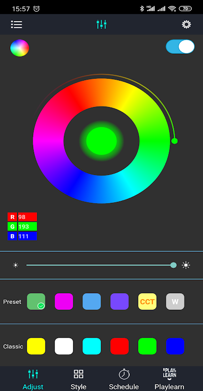 A través de esta aplicación móvil, no solo puede controlar el color, el brillo y el color