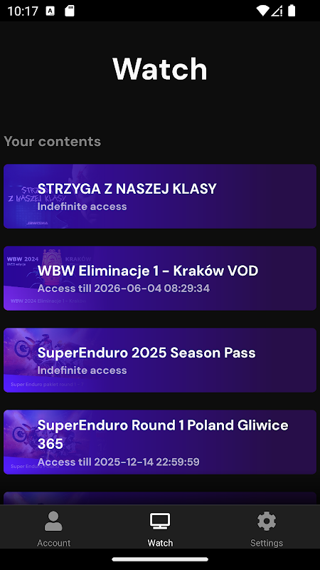 Todo esto está disponible a tu alcance mediante la aplicación PlayLive. Playlive.net es una plataforma de transmisión de pago por evento. El sistema de pago transparente permite una compra rápida de licencias y acceso instantáneo al producto. Siente las mayores emociones garantizadas por funcionalidades adicionales como el cambio de cámara: mira el evento desde diferentes perspectivas y disfruta asistiendo a un evento online en tiempo real. Playlive también es un reproductor VOD, que permite a los espectadores ver materiales de vídeo de archivo. ¡Gracias a nuestra aplicación, llegarás a todos los espectáculos!