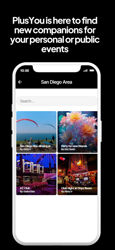 PlusYou es una aplicación de reuniones sociales creada para encontrar compañeros para tus eventos.