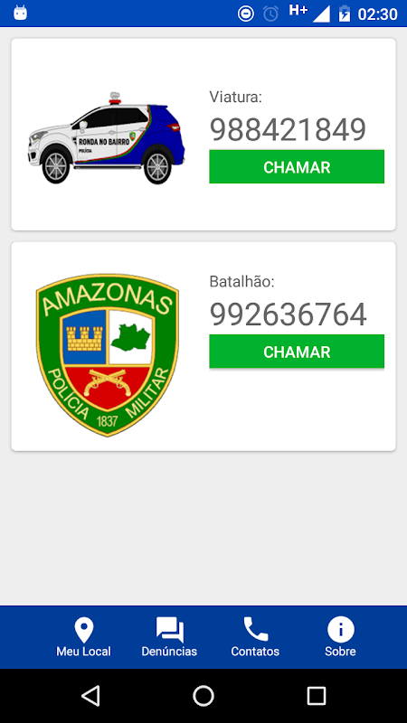 *Contatos: caso você prefira ligar diretamente para o contato da polícia do município, o aplicativo possui alguns números de telefones úteis.