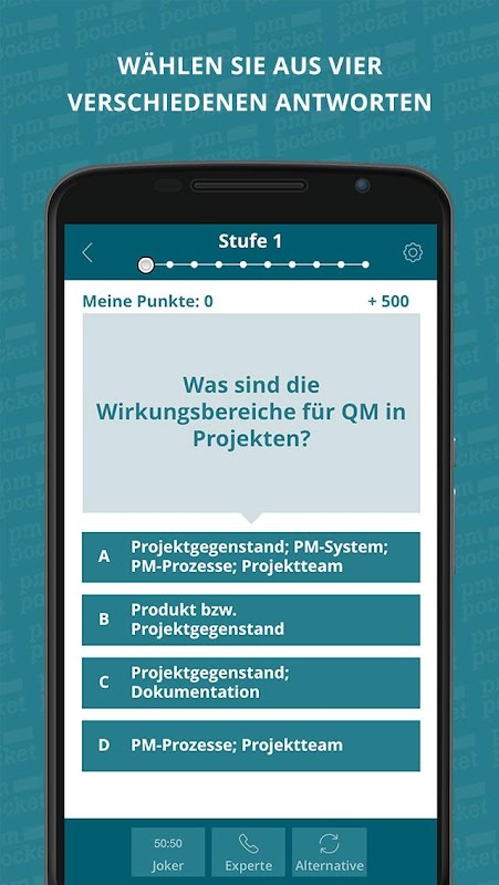 Bei einer falsch beantworteten Frage haben Sie leider verloren und müssen von vorn beginnen – aber erst Übung macht bekanntlich den Meister, bzw. den PM-Experten!
