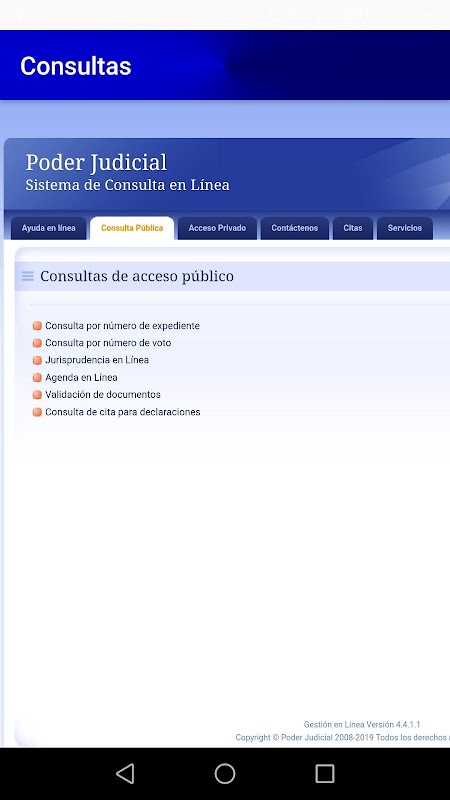 En esta aplicación usted podrá acceder fácilmente desde su teléfono a las siguientes opciones del sitio del poder Judicial: