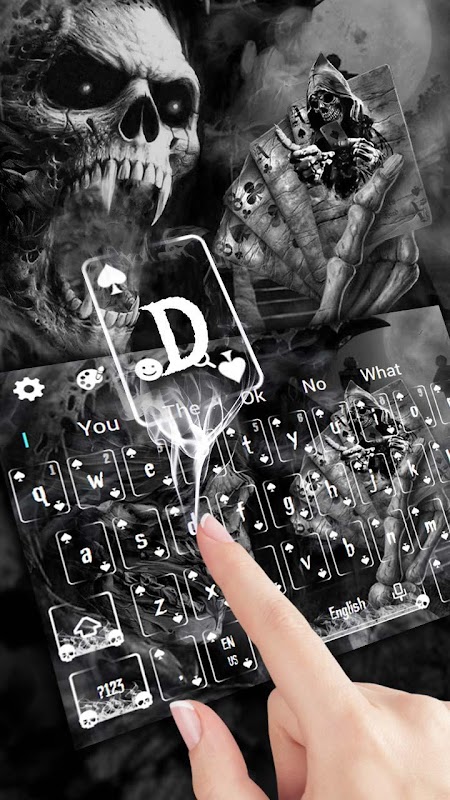 Know ¡Sabemos cuánto le gusta el tema del teclado del cráneo del hombre-comedor de Poker para personalizar su dispositivo móvil y es por eso que creamos los diseños del tema del teclado del cráneo del jugador de póquer que le sorprenderán!
