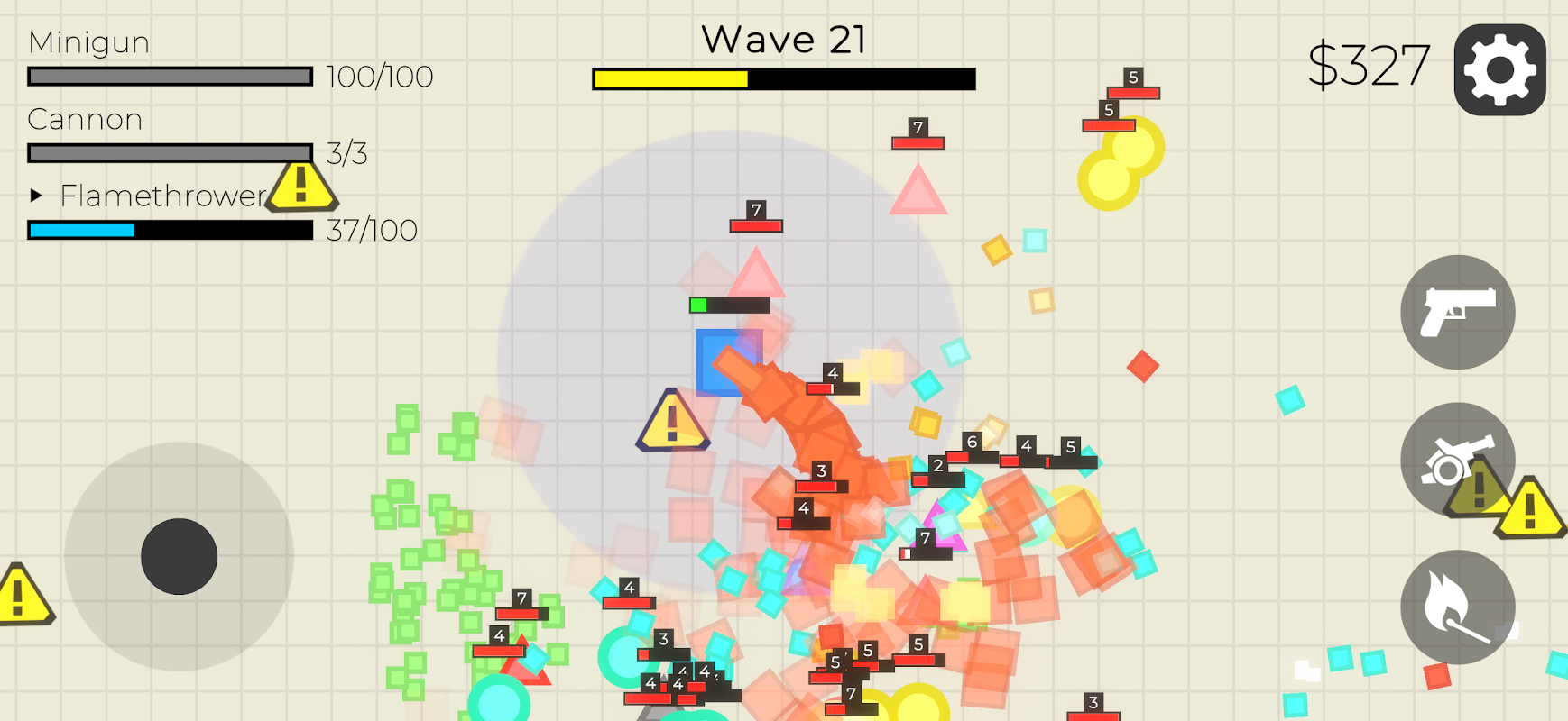 Gana dinero después de cada ola y sube de nivel tus armas para causar más daño, disparar más rápido o sobrevivir más tiempo. Elige entre ametralladoras, cañones, lanzagranadas y más, cada uno con fortalezas y estrategias únicas.