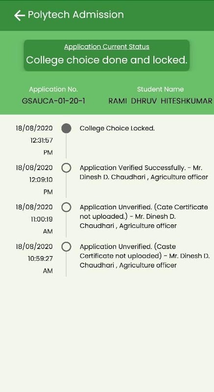 La solicitud de admisión de Polytech puede verificar el historial por número de solicitud.