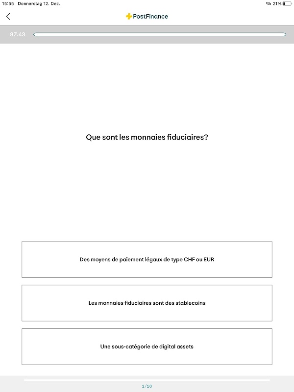 Aplicación de aprendizaje móvil exclusiva para empleados de PostFinance.