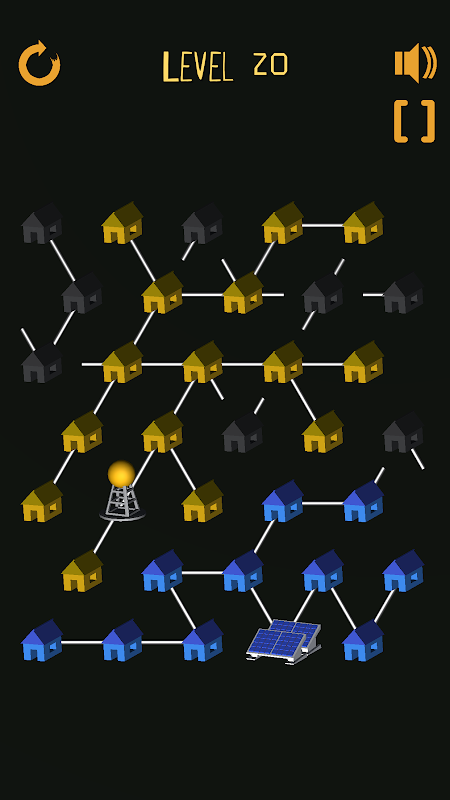 Un relajante juego de rompecabezas sobre la conexión de edificios y fuentes de energía.
