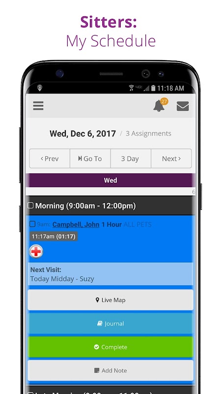✔️ herramientas de programación integral, incluyendo visitas en curso (recurrentes), las notificaciones de conflicto y un vivo Sitter Mapa