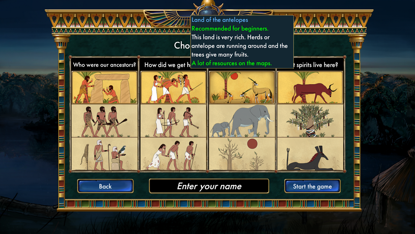 Juego de estrategia de simulación histórica por turnos en el que liderarás a través de la historia del Egipto predinástico. Empezando en el 5 000 a. C., guiarás las tribus humildes y nómadas egipcias a través de todas las dificultades hacia la prosperidad y el poder, culminando con la unificación del Bajo y Alto Egipto.