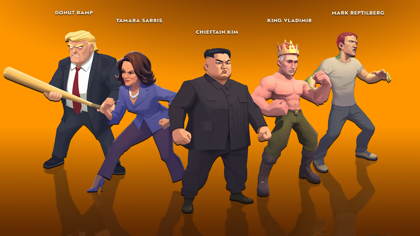 Adéntrate en el caótico mundo de President Kombat, un juego de lucha satírico donde los políticos y celebridades más notorios se enfrentan para demostrar quién está realmente en la cima. Tras llevar al mundo al colapso con su codicia y ansia de poder, estos peces gordos se niegan a rendirse. Ahora, literalmente, toman las riendas.