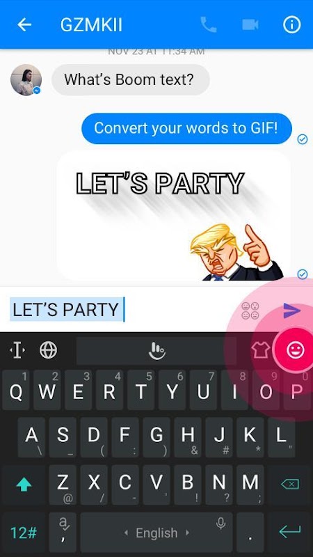 BoomText para TouchPal teclado. ¡AUGE! Texto de otra manera! Crear su propio GIF!