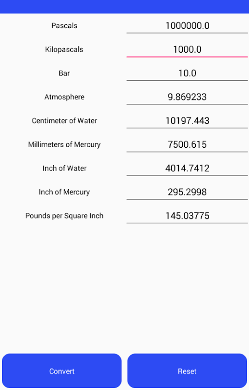 El convertidor de presión convierte varias unidades diferentes de presión