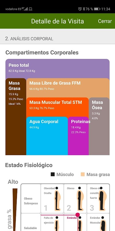 • Análisis de Composición Corporal: % grasa, músculo, agua, cálculo del metabolismo basal.