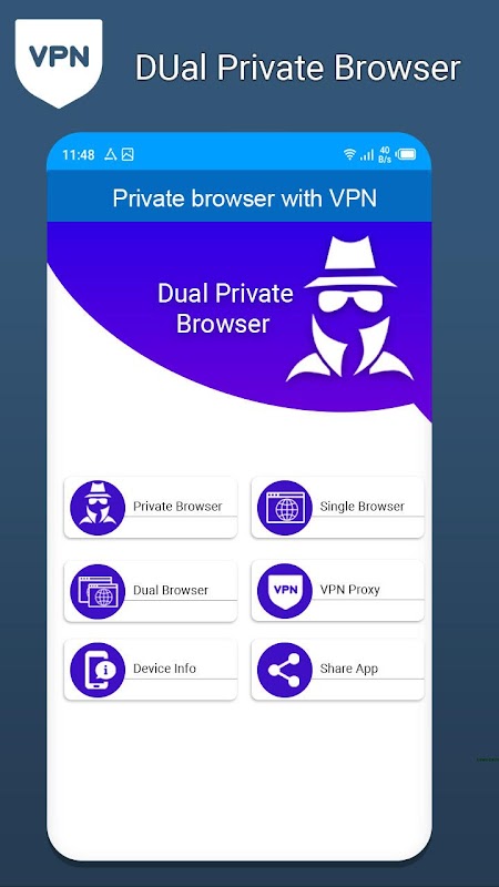 Navegador privado O Navegador de incógnito: Hoy en día, todos son conscientes de su privacidad en Internet y quieren un navegador web privado o un navegador de privacidad en modo seguro para navegar de forma segura en un navegador restringido o secreto. Nuestro navegador privado de incógnito es la mejor solución para todos. Nuestro navegador gratuito de incógnito le proporciona un motor de búsqueda privado para navegar libremente. La navegación privada en modo incógnito en nuestro navegador mantiene su privacidad de navegación y no guarda nada de su historial de búsqueda privado. Es un navegador de apertura de correo electrónico de incógnito para leer y enviar sus correos electrónicos libremente. Es un navegador seguro en modo incógnito y un navegador privado gratuito que no almacena caché ni cookies. Es el mejor navegador privado de incógnito para teléfonos Android.