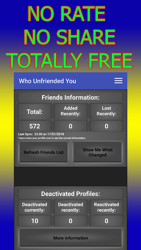 🥇No other app gives you information in real time, including notifications when your friends deactivate / reactivate their profiles.