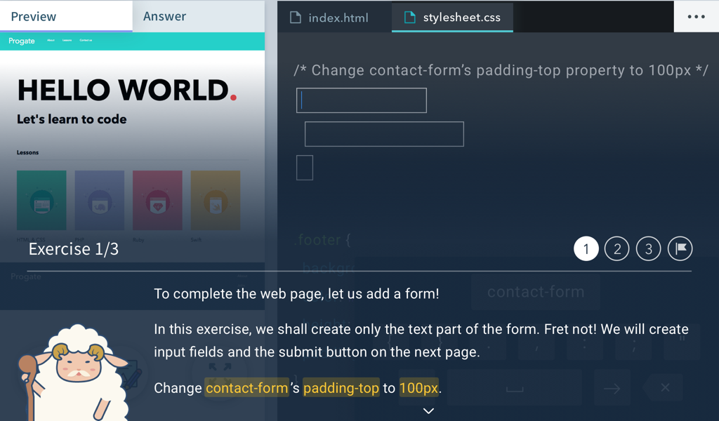 Con Progate, tenemos "Niveles" que aumentan a medida que aprendes.