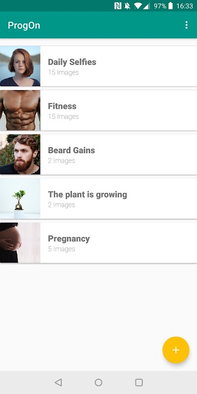 ProgOn le ofrece una oportunidad fácil para rastrear su progreso o un cambio en las imágenes. Es perfecto si desea hacer un seguimiento de su pérdida de peso, ver sus ganancias musculares, tomarse una autofoto todos los días, registrar la construcción de su nuevo hogar o ver cómo está creciendo su hijo. Puede desplazarse por su progreso y comparar el cambio en las imágenes antes y después. Puede exportar los resultados como imagen o GIF.