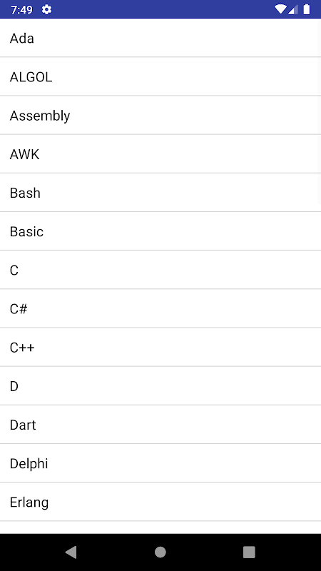 Esta aplicación contiene información breve y útil sobre los más de 40 lenguajes de programación más utilizados, especialmente los siguientes lenguajes de programación.