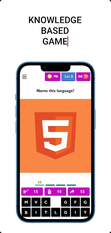 The objective of Programming Logo Quiz is to try to guess the the programming language by the image given in each level. You are given 14 letters and you must choose the letters in the right order to spell the answer right. You will be then given coins when you answered right, if you are stuck with a level you can ask for hints that will cost you some coins.