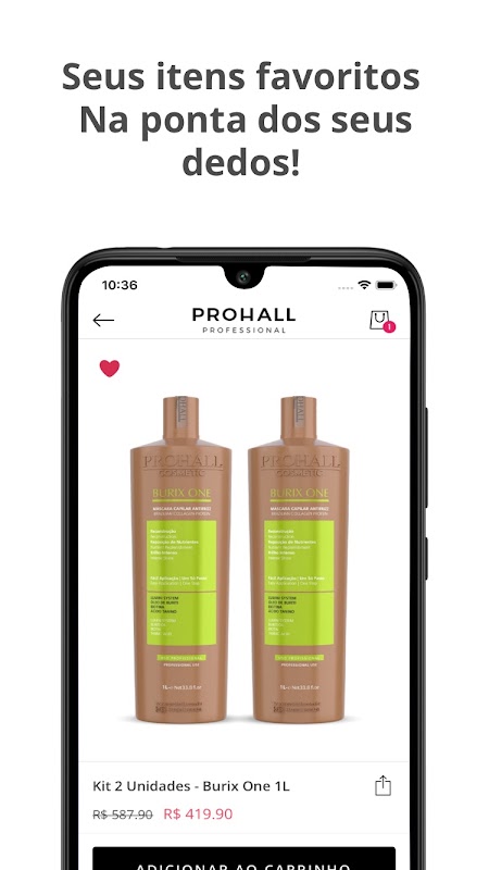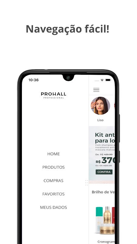 Baixe o app Prohall e tenha acesso a promoções exclusivas, novas coleções e cupons. Aproveite vantagens especiais e cuide do seu cabelo com economia!