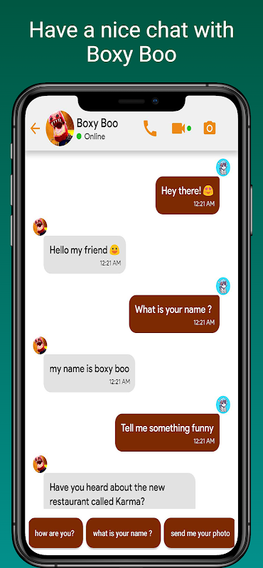¿Te encanta Huggy Wuggy y Mami piernas largas? ¿bien adivina que? estamos felices de anunciar un nuevo personaje que todos adorarán, Boxy boo de Project Playtime, y lo que es aún más sorprendente es que en nuestra aplicación, puede tener una llamada y chatear increíbles desde project playtime con su amado personaje de amapola Boxy Boo y bromea con tus encantadores amigos y familiares.